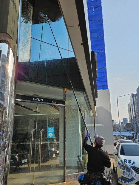 저희 퍼스트클린은 저층은 물론 이번 현장보다도 훨씬 높은 고층도 문제없이 청소가 가능한 전문업체입니다. 로프 혹은 스카이차량을 이용하게되면 불가능해보이는 위치에서도 청소가 가능하며, 이러한 노력덕분에 건물의 외관은 깔끔한 모습을 되찾을 수 있었죠.